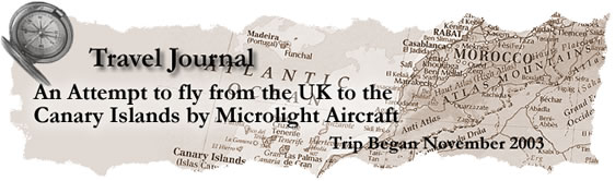 We finally escaped the low cloud to make a break for the Spanish coast on the 11th November! And what a last few days it has been! I so far have about 150 pictures, 3 tapes of video footage, with a good selection of brilliant shots, along with most airfield landings and takeoffs. Morocco posed a particular problem, especially with a recent terrotorial claim by Algeria over their land, or so we decipered in the local newspapers....