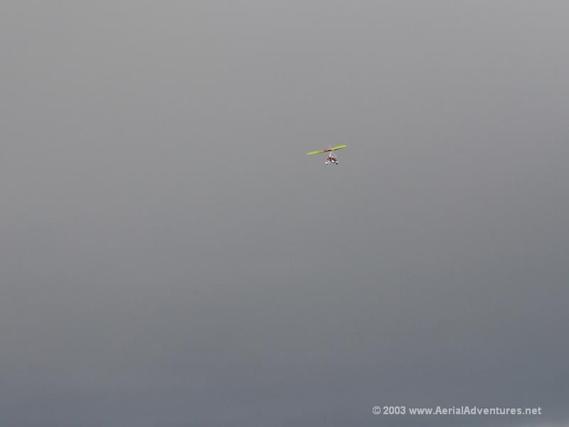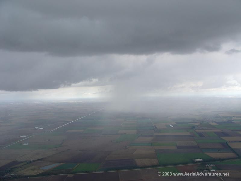 Under the cloud, and columns of rain visible, but directly over the field. 5 Flexwings orbited the field around the column to land |