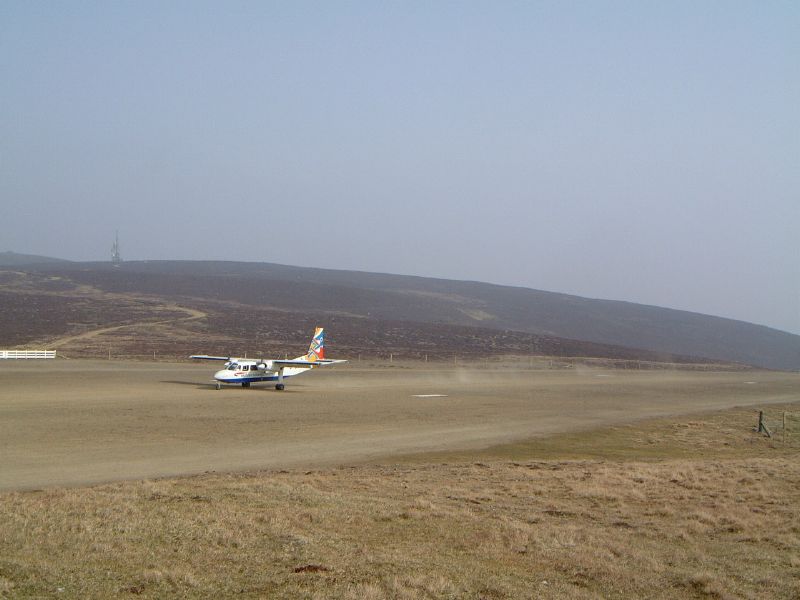 | Parking in the Tingwall, Shetland in the hangar with the Islander Plane |