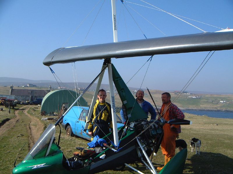 Our aircraft G-AZ parked up in the field, Mid-Yell, Shetland |